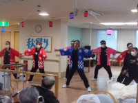 認知症専門棟では、くじ引き・豪華な食事はもちろん、職員によるソウラン節の演武、お神輿のフロアー内練り歩きで「秋祭り」をご利用者の皆様には楽しんでいただけたのではないかと思います。