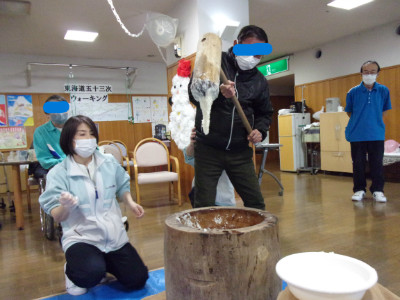 令和7年12月16日(火)通所フロアーにて、もちつき大会を開催いたしました。 一年の締めくくりとして皆様、懐かしさや季節感を感じていただけたイベントとなりました。